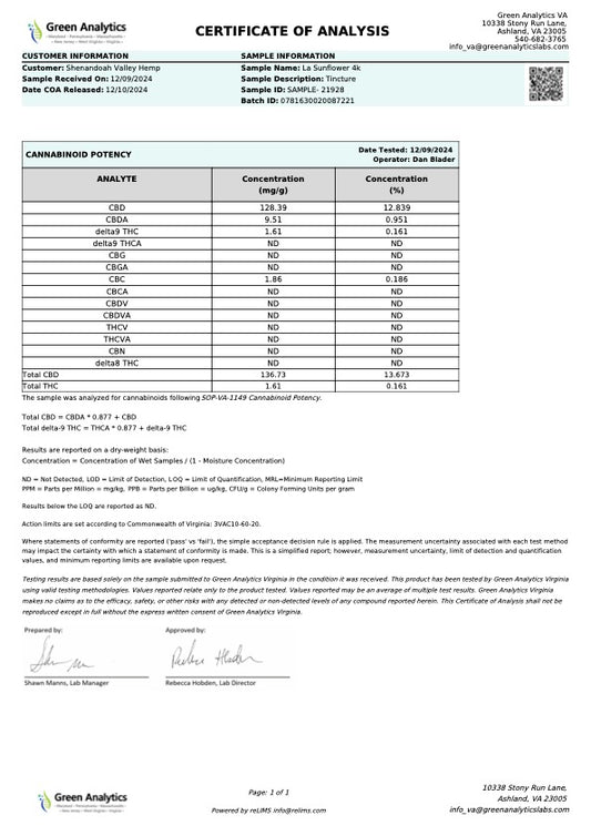 4000mg. Organic Hemp Extract Full Spectrum Tincture For Chronic Pain, Inflammation, Anxiety & Restlessness