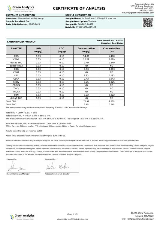 2000mg. Organic Hemp Extract Full-Spectrum Tincture For Moderate Pain, Inflammation, Anxiety & Restlessness