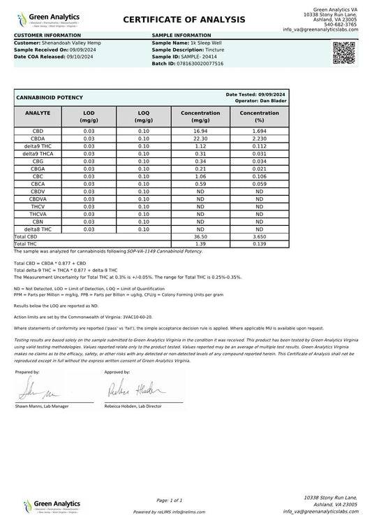 Organic Sleep Well Full-Spectrum 1000mg.Tincture: It's Time To Sleep As Nature Intended!
