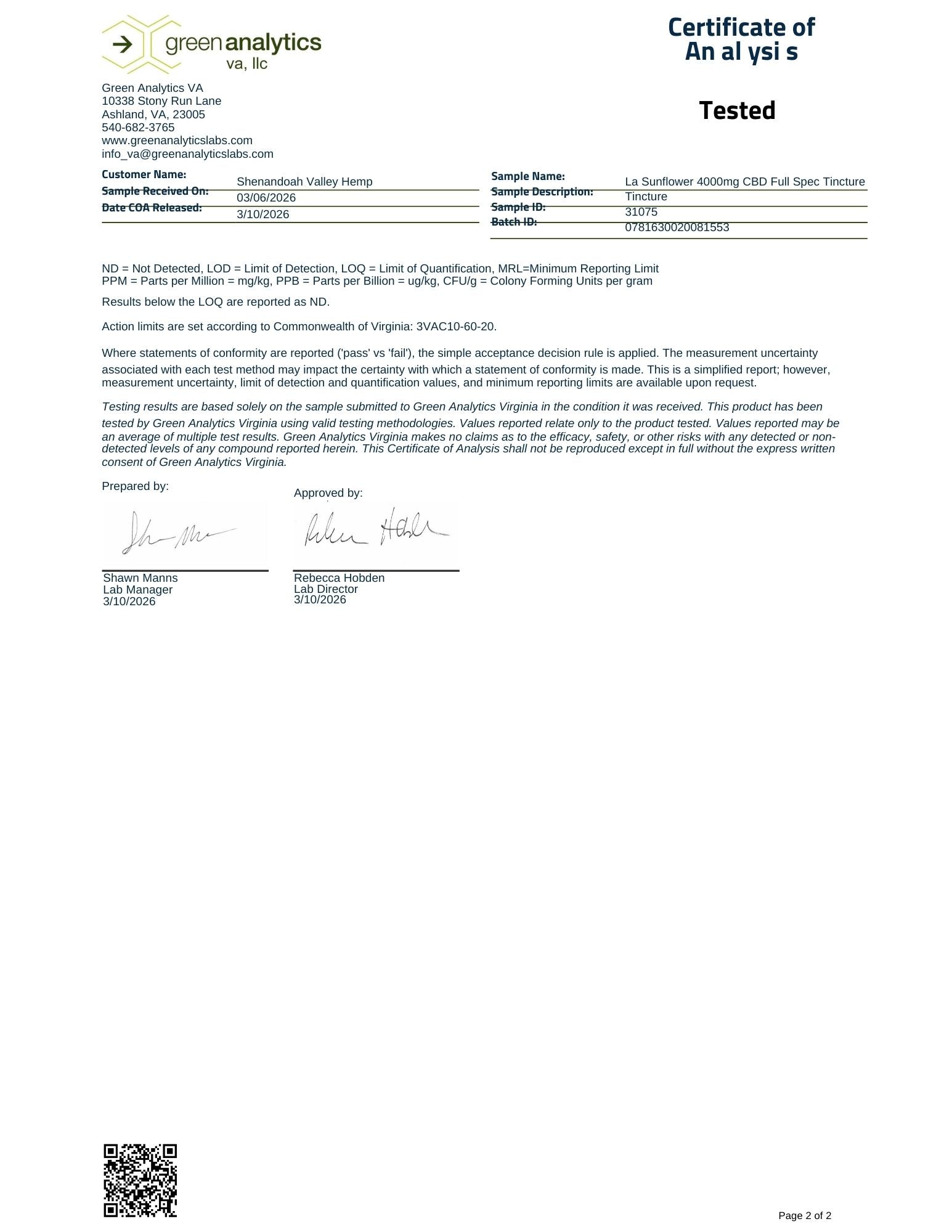 Certificate of Analysis 2-24-26 Batch 0521630020081629